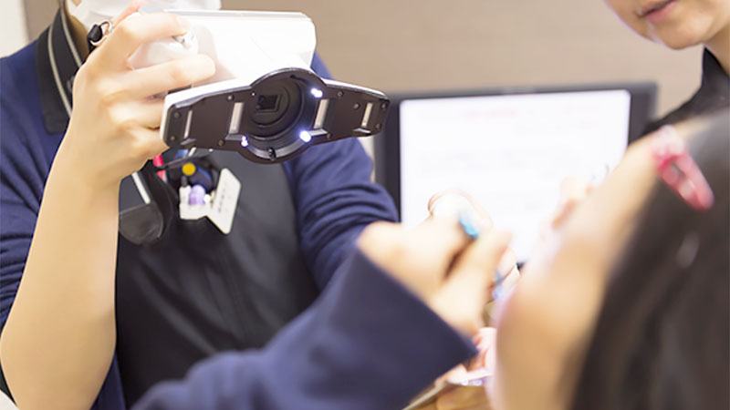歯型のデータを被せものや詰めものの作成、歯列矯正などに利用するため、型取りの負担が軽減されます。