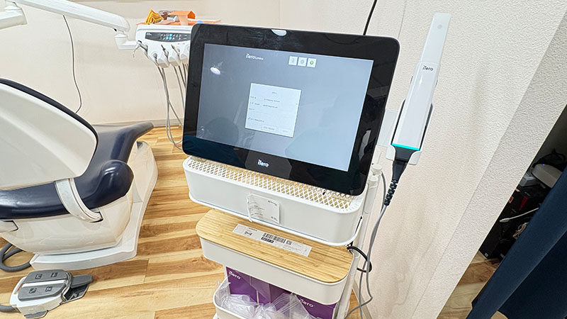 お口のなかを小型カメラでスキャンし、歯型を採取するための機械です。