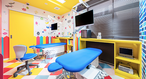 通常のいす式の診察台だけじゃなくてフラットタイプの診察台もあるので、小さい子でも大丈夫です!