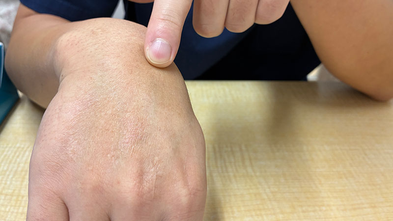 人間、ケガをしたときに跡が残りますよね、自分でいうとこれなんですが「瘢痕(はんこん)」といいます。