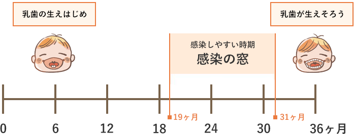ここは「感染の窓」と呼ばれ、最も「ミュータンスレンサ球菌」という虫歯菌が定着しやすいタイミング。