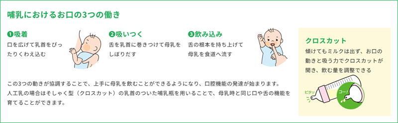 吸啜運動(きゅうてつうんどう:乳首を吸う口周囲の筋肉を使う)を通じてベロ・アゴ・口周りの筋肉発達を促すため