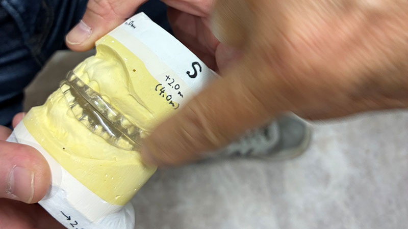 先ほどの患者さんは、受け口なので力が強いんです。