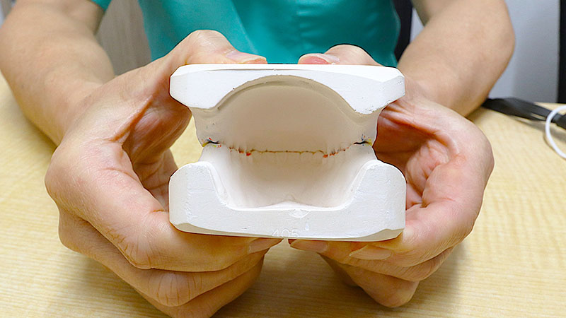 大事なのは、それぞれの患者さんが呼吸しやすい位置にプレートが行き、且つ歯にかかる力が滑ることによって掛からない。